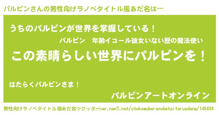 | 女子向けラノベタイトル風あだ名 | 『悪役パルピンに転生したようですが、知った事ではありません』 |