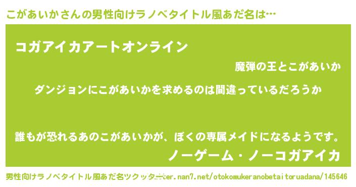 | 女子向けラノベタイトル風あだ名 | 『こがあいかは平凡を望む』 |