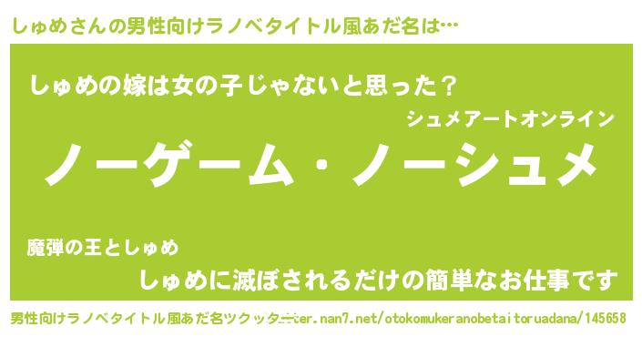 | ヘコむあだ名 | 『しゅを』『しゅもー』『なまこ酢』 |