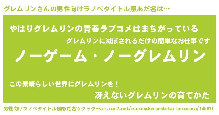 | 女子向けラノベタイトル風あだ名 | 『グレムリン恋絵巻』 |