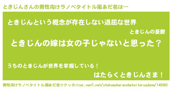 | 女子向けラノベタイトル風あだ名 | 『ときじん様がみてる』 |