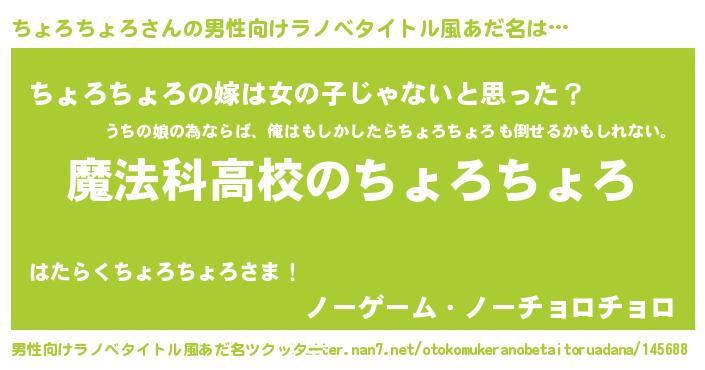 | 女子向けラノベタイトル風あだ名 | 『ちょろちょろなんてお断りですっ。』 |
