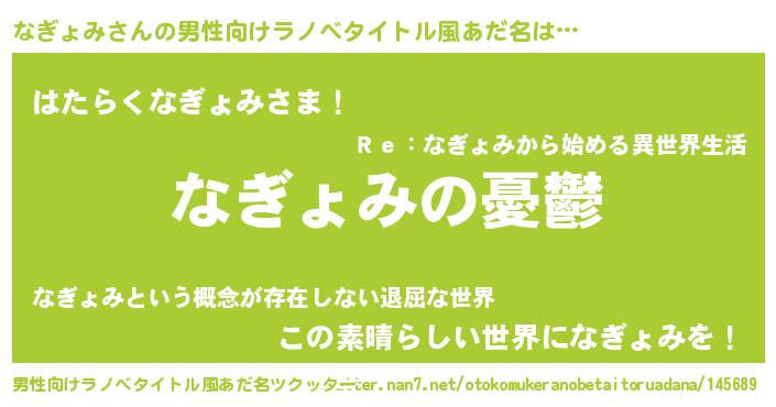 | ヘコむあだ名 | 『なぎにー』『なぎょみ(震え声)』 |