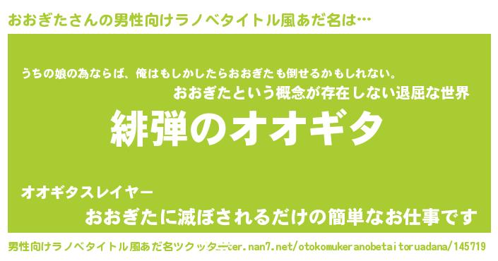 | 意味不明あだ名 | 『おおぎたフォーエバー』 |