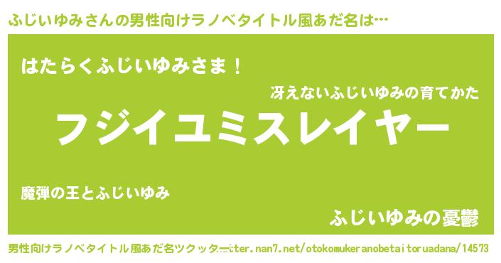 | 胡散臭い通販商品みたいなあだ名 | 『必ず成功するブレスレット…その名も「ふじいゆみ」』 |