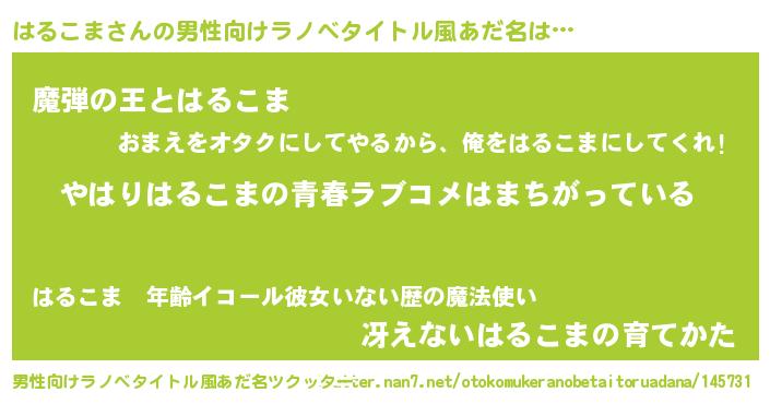 | 女子向けラノベタイトル風あだ名 | 『はるこまの雑貨屋さん』 |