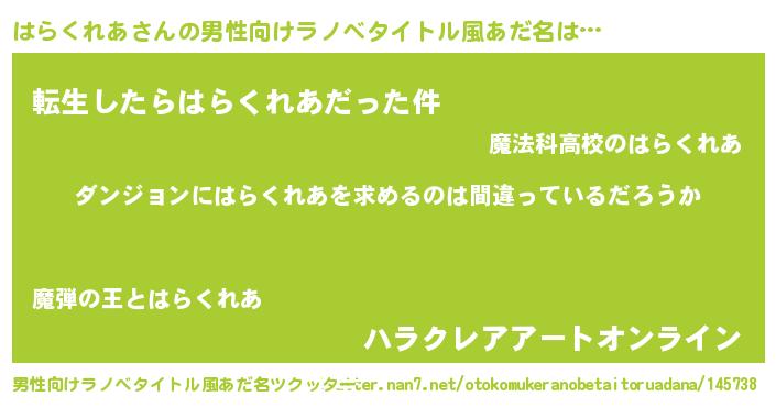 | 女子向けラノベタイトル風あだ名 | 『はらくれあは平凡を望む』 |