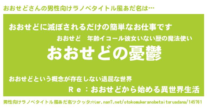 おおせどさんの男性向けラノベタイトル風あだ名をツクッター!