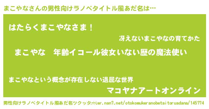 | 胡散臭い通販商品みたいなあだ名 | 『億万長者になれる霊験あらたかなお札…その名も「まこやな」』 |