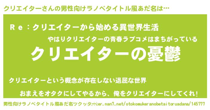 クリエイターさんの男性向けラノベタイトル風あだ名をツクッター!