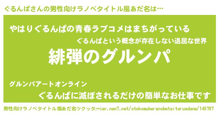 | ヒーロー風カッコイイあだ名 | 『ウルトラぐるんぱマン』『ネオグルンパ』 |