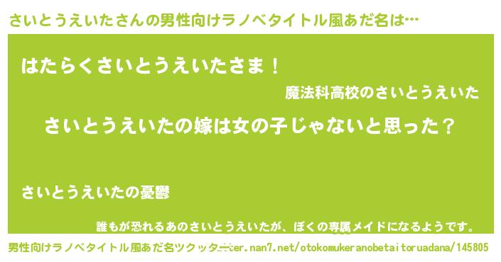 | 女子向けラノベタイトル風あだ名 | 『さいとうえいたの卵を拾いまして』 |