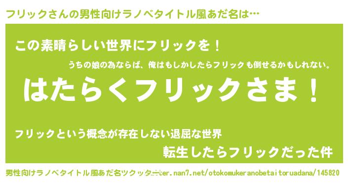 | ヘコむあだ名 | 『豆乳』『フリック(小並感)』 |
