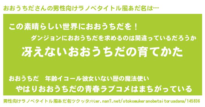 | 胡散臭い通販商品みたいなあだ名 | 『世界中を虜にした100年もののヴィンテージワイン…その名も「おおうちだ」』 |