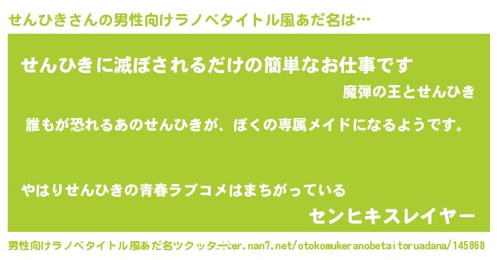 | ヘコむあだ名 | 『せんひき(小並感)』『酢こんぶ』 |