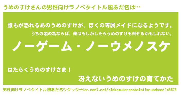 | ヘコむあだ名 | 『うめのすけ(笑)』『なまこ酢』 |
