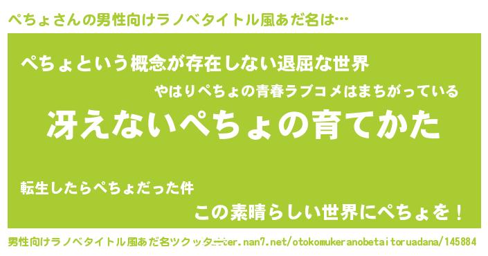 | ヘコむあだ名 | 『ぺちょ(小並感)』『なまこ酢』 |