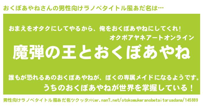 | 意味不明あだ名 | 『住所不定無職おくぼあやね(71歳)』 |
