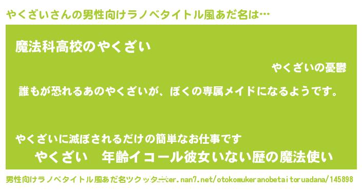 | ヘコむあだ名 | 『やくざい(遠い目)』『やくもー』 |
