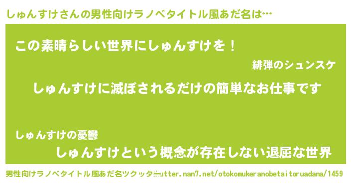 | 意味不明あだ名 | 『住所不定無職しゅんすけ(7歳)』 |