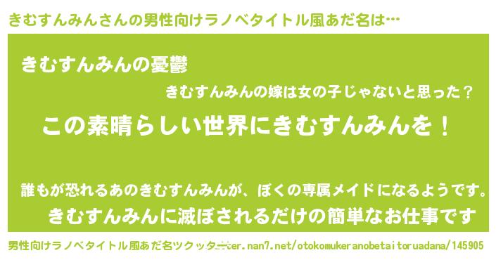 | 女子向けラノベタイトル風あだ名 | 『悪役きむすんみんに転生したようですが、知った事ではありません』 |