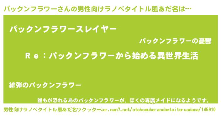 | 女子向けラノベタイトル風あだ名 | 『闇のパックンフラワー』 |