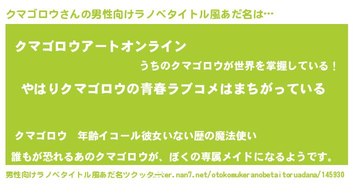 | 女子向けラノベタイトル風あだ名 | 『クマゴロウの雑貨屋さん』 |