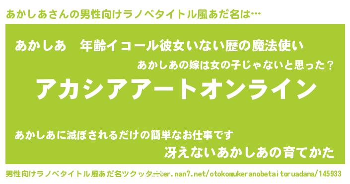 | 女子向けラノベタイトル風あだ名 | 『誰かこのあかしあを説明してください! ~契約から始まるウェディング~』 |