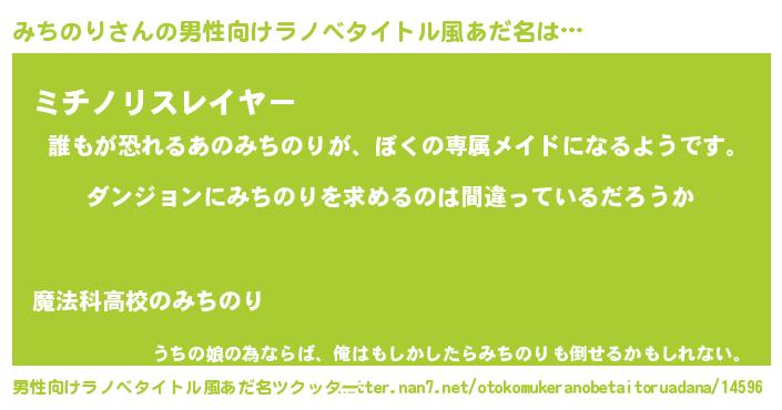 | 女子向けラノベタイトル風あだ名 | 『みちのりの卵を拾いまして』 |