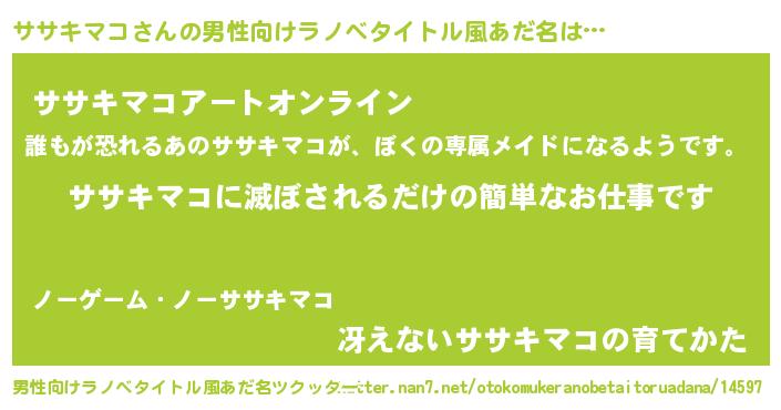 | ヘコむあだ名 | 『ササもー』『ササキマコ(笑)』 |