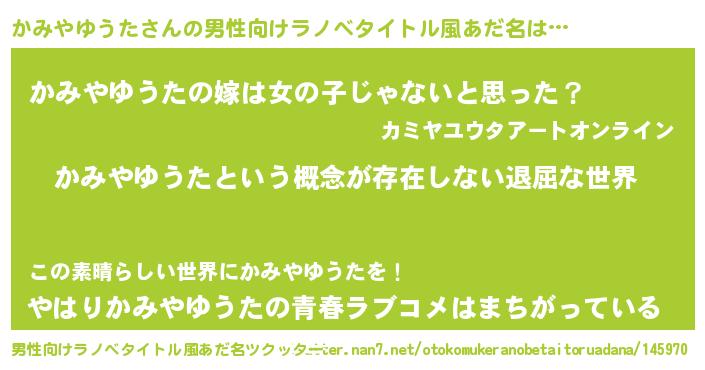 | 女子向けラノベタイトル風あだ名 | 『異世界で失敗しない100のかみやゆうた』 |