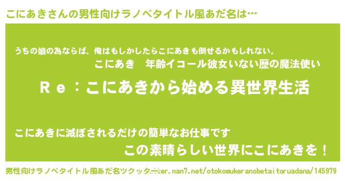 | 女子向けラノベタイトル風あだ名 | 『こにあきストレイドッグス』 |