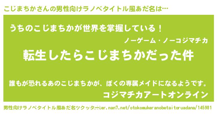 | 伝説のあだ名 | 『不死鳥の竜騎士こじまちか』 |