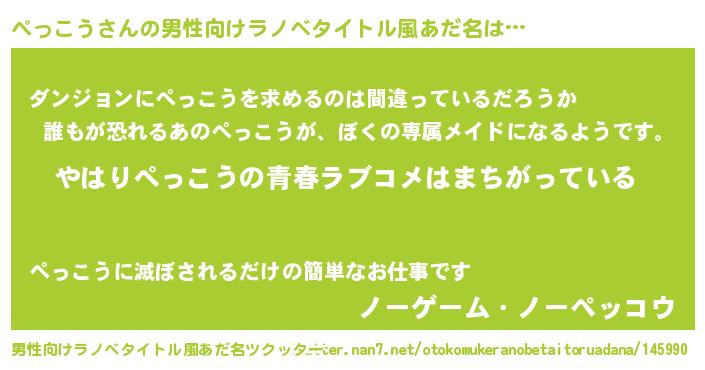 | 意味不明あだ名 | 『ぺっこうフォーエバー』 |