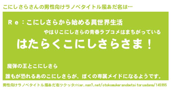 こにしさらさんの男性向けラノベタイトル風あだ名をツクッター!