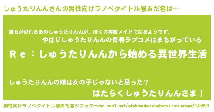 | 女子向けラノベタイトル風あだ名 | 『闇のしゅうたりんん』 |