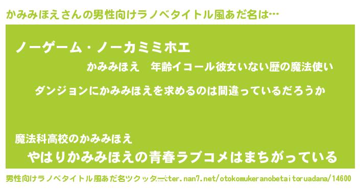 | 意味不明あだ名 | 『とにかく怪しいかみみほえ』 |