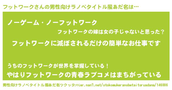 | ヒーロー風カッコイイあだ名 | 『愛の使者フットワーク』『黄金騎士フッ』 |