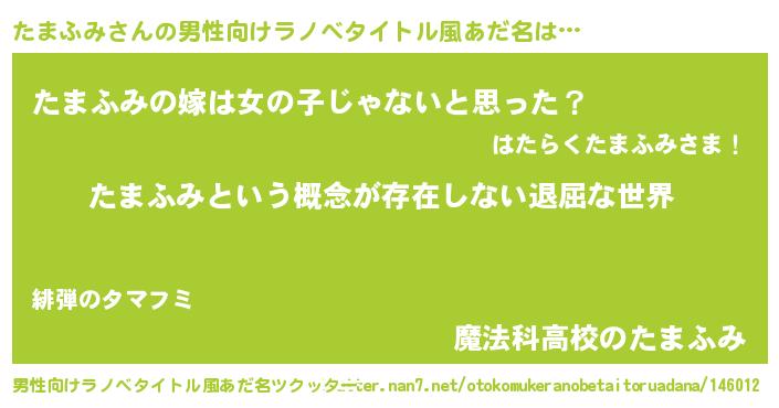 | 女子向けラノベタイトル風あだ名 | 『異世界で失敗しない100のたまふみ』 |