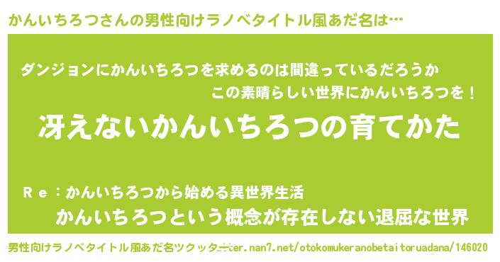 かんいちろつさんの男性向けラノベタイトル風あだ名をツクッター!