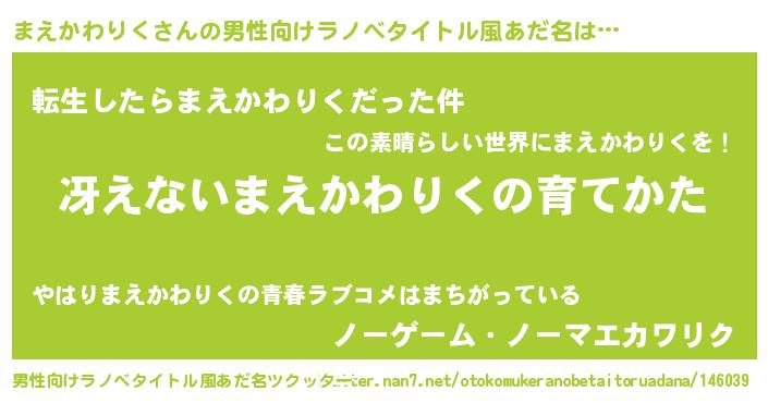 | 胡散臭い通販商品みたいなあだ名 | 『お金では代えられないマグネット磁石…その名も「まえかわりく」』 |