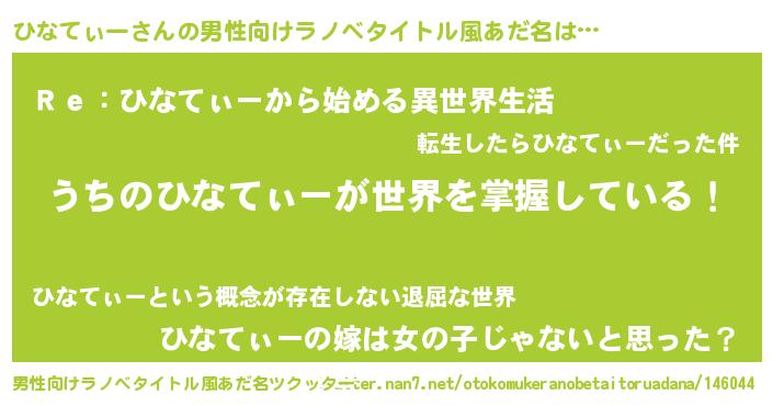 | ヘコむあだ名 | 『ひなを』『ひなてぃー(小並感)』 |