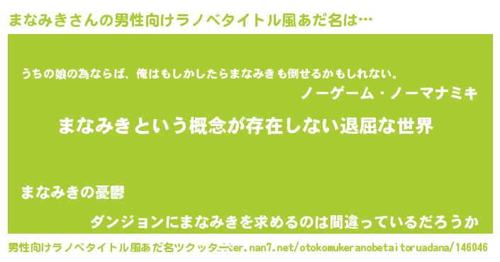 | 女子向けラノベタイトル風あだ名 | 『まなみきの契約王妃』 |
