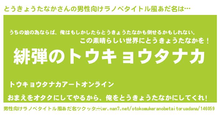 | 意味不明あだ名 | 『とうきょうたなかフォーエバー』 |