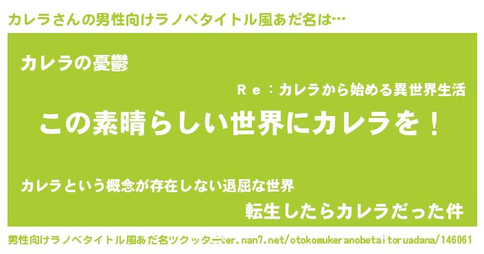 | 胡散臭い通販商品みたいなあだ名 | 『あなたにだけ特別に提供する100年もののヴィンテージワイン…その名も「カレラ」』 |