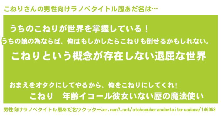 | 胡散臭い通販商品みたいなあだ名 | 『来世でも幸せになれる健康食品…その名も「こねり」』 |
