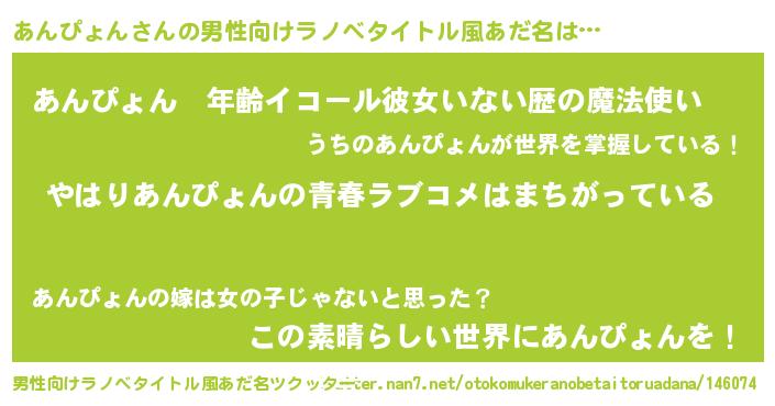 | 女子向けラノベタイトル風あだ名 | 『あんぴょん伯爵の花嫁』 |