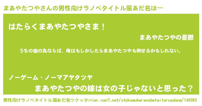 | 女子向けラノベタイトル風あだ名 | 『まあやたつやの婚約者』 |