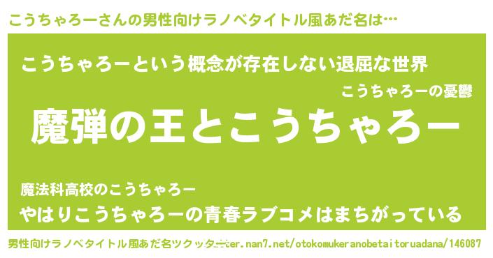 | 意味不明あだ名 | 『住所不定無職こうちゃろー(47歳)』 |