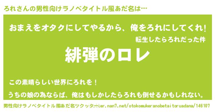 | ヘコむあだ名 | 『牛乳』『ろれ(遠い目)』『ろれにー』 |